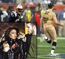 Après l'hymne national américain interprété par Beyonce. La première partie de la finale de la NFL s'est déroulée sans problème, coupée comme de coutume par de nombreux spots publicitaires. Mais à la mi-temps, lors d'un spectacle produit par MTV avec les chanteurs P-Diddy, Nelly, Kid Rock, Janet Jackson et Justin Timberlake, un événement insolite est venu perturber le show. En effet, à la fin de la chanson "Rock Your Body", chantée en duo par Janet Jackson et Justin Timberlake, ce dernier, dans un mouvement chorégraphique, a arraché en partie le corsage de Janet Jackson... Dévoilant son sein droit ! CBS, qui diffusait la rencontre, a immédiatement coupé la retransmission mais n'a pas mentionné l'incident en direct. Quelques minutes plus tard, à l'ouverture de la seconde mi-temps, un homme vêtu d'un uniforme d'arbitre s'est dénudé et à fait irruption sur le terrain, avant d'être plaqué par l'un des joueurs...